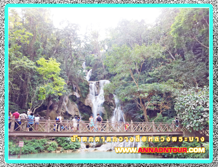 น้ำตกตาดกวางซี อยู่ห่างจากเมืองหลวงพระบางประมาณ 30 กิโลเมตร เป็นน้ำตกขนาดใหญ่ มีน้ำตกจากหน้าผาสูงประมาณ 70 เมตร ในช่วงฤดูฝนน้ำตกแห่งนี้จะมีน้ำมาก ไหลเชี่ยวแรงเป็นสีน้ำตาลขุ่น จนทำให้ระอองน้ำกระเซ็นมาถึงตัวนักท่องเที่ยว ที่ยืนชมบนสะพานชมน้ำตกตาดกวางซี บรรยากาศภายในบริเวณน้ำตกตาดกวางซี ร่มรื่นเมื่อเริ่มเดินทางจากทางเข้าน้ำตก ก็จะเห็นต้นไม้ใหญ่ที่อยู่สองข้างทางปกคลุมไปทั่วบริเวณ สร้างร่มเย็นและความเพลิดเพลินให้กับนักท่องเที่ยวที่เดินทางไปเที่ยวชมน้ำตกตาดกวางซี บริเวณทางเข้าน้ำตกตาดกวางซี มีร้านอาหาร ร้านค้า ร้านขายของที่ระลึกจำนวนมากเปิดให้บริการนักท่องเที่ยว ค่าธรรมเนียมเข้าชม คนละ 20,000 กีบ ค่าธรรมเนียมจอดรถ คันละ 5,000 กีบ เปิดให้เข้าชม ตั้งแต่ 08.00 น. - 17.00 น. สอบถามรายละเอียดได้ที่ โทร. (856-071)212068,