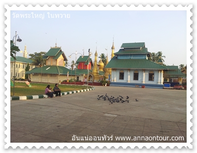 วัดพระใหญ่ในทวาย มีชื่อเรียกเป็นภาษพม่า แบบภาษาอังกฤษว่า Shwe Taung Zar Pagoda ผมถามมอเตอร์ไซค์รับจ้างเขาพูดเป็นภาษาพม่าแล้วผมฟังไม่ชัดก็เลยบอกไม่ถูก แต่ก่อนเข้าประตูวัดพระใหญ่นี้ต้องถอดรองเท้ากันตั้งแต่หน้าปากประตูเลย คนที่เข้ามาในวัดนี้ก็จะต้องมองเห็นองค์เจดีย์ขนาดใหญ่สีเหลืองอร่ามเปล่งแสงสวยงามเหมือนทองคำ ด้านทางขึ้นไปยังเจดีย์มีแผงจำหน่ายหนังสือพุทธศาสนาเป็นภาษาพม่า ส่วนด้านบนเจดีย์สามารถเดินวนรอบได้ เพื่อกราบไหว้ขอพรตามแบบพม่า มีสิ่งศักดิ์สิทธิ์ที่ผมเห็นน่าจะเป็นท้าวทันใจ กับรูปปั้นหนู แล้วก็มีขันน้ำเหมือนให้ตักรดตามอายุของคนที่ตัก ส่วนในศาลาวัดก็จะมีพระพุทธรูปสีเหลืองอร่ามมีคนพม่าเข้ามากราบไหว้ขอพร ผมถามชื่อพระพุทธรูปไม่ใช่แต่น่าจะเป็นชื่อเดียวกับชื่อวัดเลย แต่ถามว่าทำไมเรียกวัดพระใหญ่อันนี้ผมไม่ทราบแน่ชัดต้องถามคนมีความรู้ที่วัดนี้ครับ แต่ผมเดา ๆ เอาว่าวัดนี้เป็นวัดที่มีชื่อเสียงของทวายมาก เขาเลยเรียกว่าวัดใหญ่อะครับ วัดนี้อยู่ไม่ไกลอยู่ในเมืองทวาย ผมดูในแผนที่ทวายแล้ววัดนี้น่าจะเป็นที่มีชื่อเสียงที่สุดในทวาย บรรยากาศในวัดเย็นสบาย นักท่องเที่ยวก็แวะเวียนเข้ามากันไม่น้อย ด้านในมีร้านค้า ห้องน้ำ บริการนักท่องเที่ยวครับ