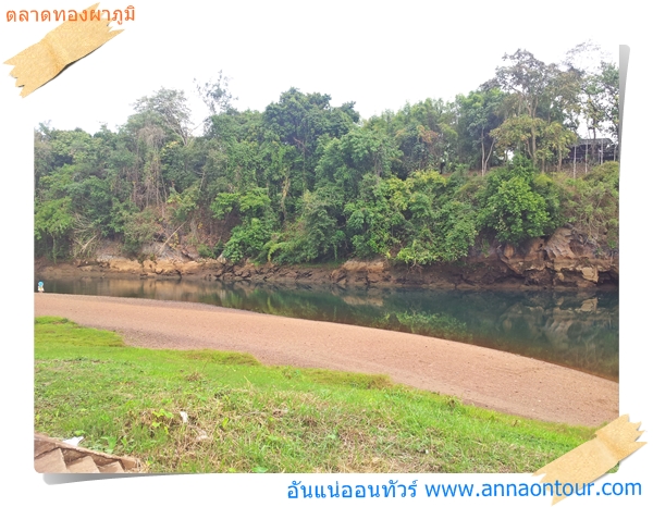 วิวสวย ๆ ของแม่น้ำและลานจอดรถใกล้ตลาดสดทองผาภูมิ |