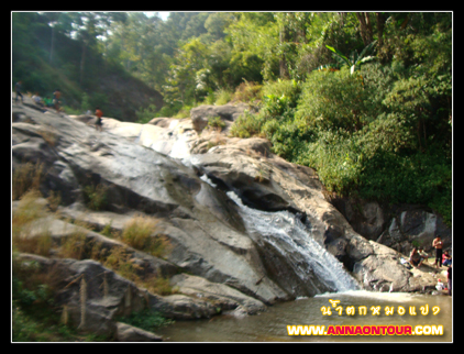 น้ำตกหมอแปง อยู่ที่หมู่ที่ 4 บ้านหมอแปง ตำบลแม่นาเติง เดินทางจากเส้นทางอำเภอปาย-แม่ฮ่องสอน มีทางแยกซ้ายจากถนนใหญ่เข้าไป 6 กิโลเมตร เป็นถนนคอนกรีตถึงบริเวณแก่งเมืองปายรีสอร์ท จากนั้นจะเป็นทางลูกรัง 2 กิโลเมตร นักท่องเที่ยวนิยมเช่าจักรยานและจักรยานยนต์มาเที่ยวชม หรือใช้รถขับเคลื่อนสี่ล้อ น้ำตกหมอแปงเป็นน้ำตกขนาดเล็กไหลลงสู่แอ่งน้ำเบื้องล่าง สูงประมาณ 5 เมตร บรรยากาศร่มรื่น ในบริเวณใกล้ๆมีชาวเขาเผ่ามูเซอแดงอาศัยอยู่