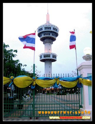 หอคอยบรรหาร-แจ่มใส และสวนเฉลิมภัทรราชินี ตั้งอยู่ถนนนางพิม อ.เมือง จ.สุพรรณบุรี
